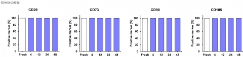 ADSC用SCB EX 一起冷冻保存 4、12、24 和 48 周。然后,我们使用流式细胞仪的阳性和阴性标记评估解冻后的细胞身份。结果表明,即使在长期冷冻保存后,用每种标记物标记的细胞百分比也不受影响。